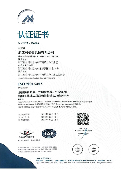 浙江利福德機(jī)械有限公司座落于中國大陸新世紀(jì)、新千年第一縷曙光首照地——溫嶺。是專業(yè)生產(chǎn)汽車懸掛擺臂總成、托架總成、球頭總成、襯套、后橋等系列產(chǎn)品等系列產(chǎn)品的大型汽車零部件制造企業(yè),遠(yuǎn)銷歐、美及世界各地區(qū)。公司創(chuàng)建于1992年,現(xiàn)有兩個(gè)廠區(qū),A廠區(qū)位于溫嶺市石塘鎮(zhèn)上馬工業(yè)區(qū),B廠區(qū)位于溫嶺市東部新區(qū)23街7號(hào),二十多年來一直奉行“顧客滿意”的宗旨,“人本管理、誠信經(jīng)營、注重品質(zhì)、力求雙贏”的理念。依靠科學(xué)管理、先進(jìn)技術(shù)、優(yōu)質(zhì)產(chǎn)品和服務(wù),贏得了國內(nèi)外客戶的好評(píng),產(chǎn)品遠(yuǎn)銷歐、美等世界各地。
